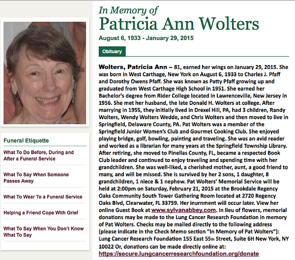 Patricia Ann Wolters, August 6, 1933 - January 29, 2015